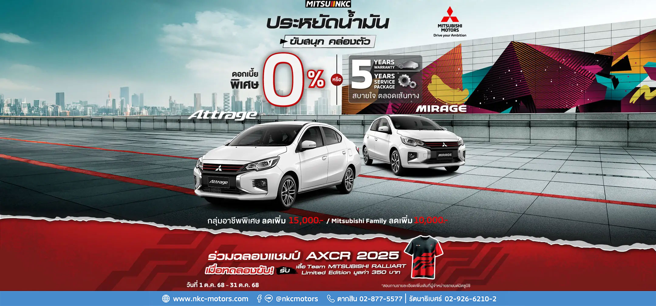 ซื้อ Attrage และ Mirage เลือกรับข้อเสนอดอกเบี้ย 0% นาน 48 เดือน