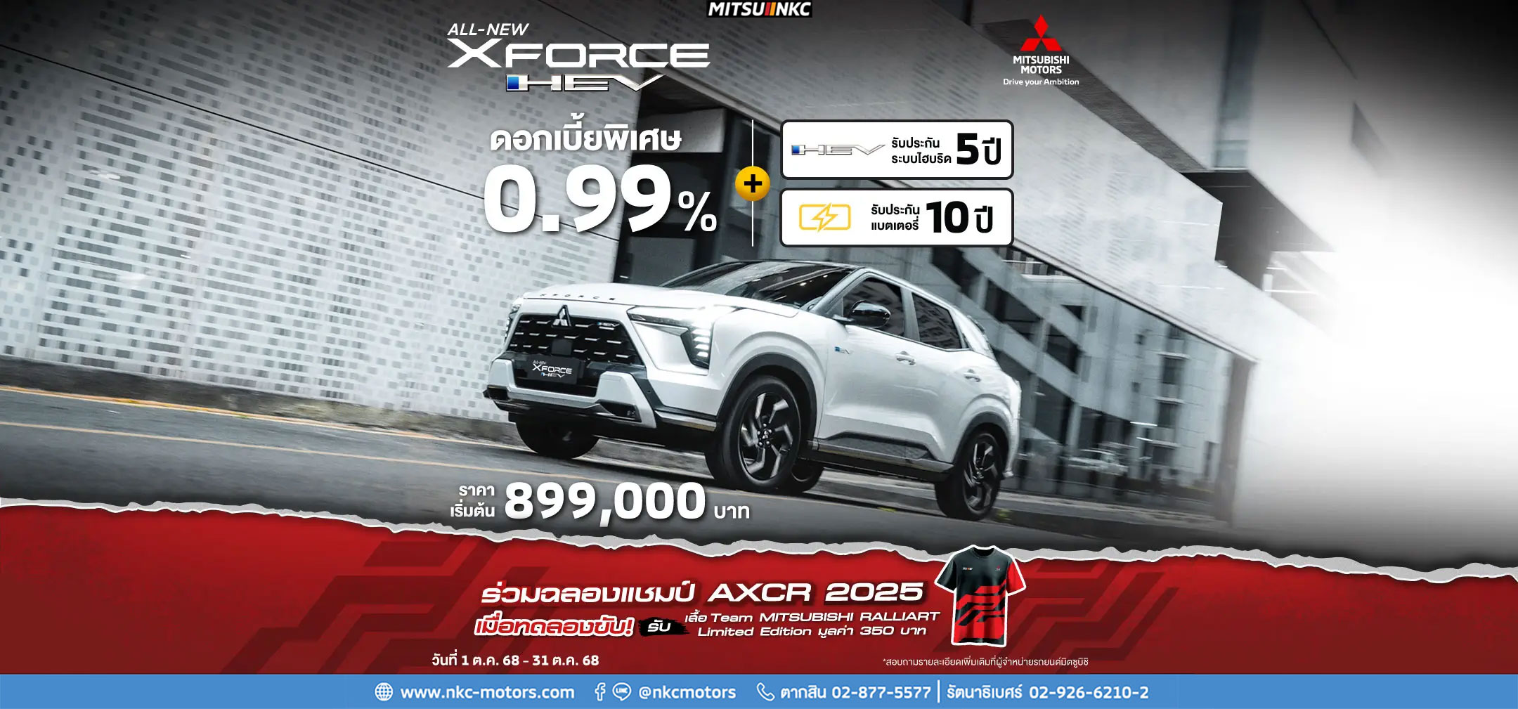 ซื้อ All-New XFORCE HEV รับข้อเสนอพิเศษ เลือกรับดอกเบี้ยพิเศษ 0.99% นาน 48 เดือน