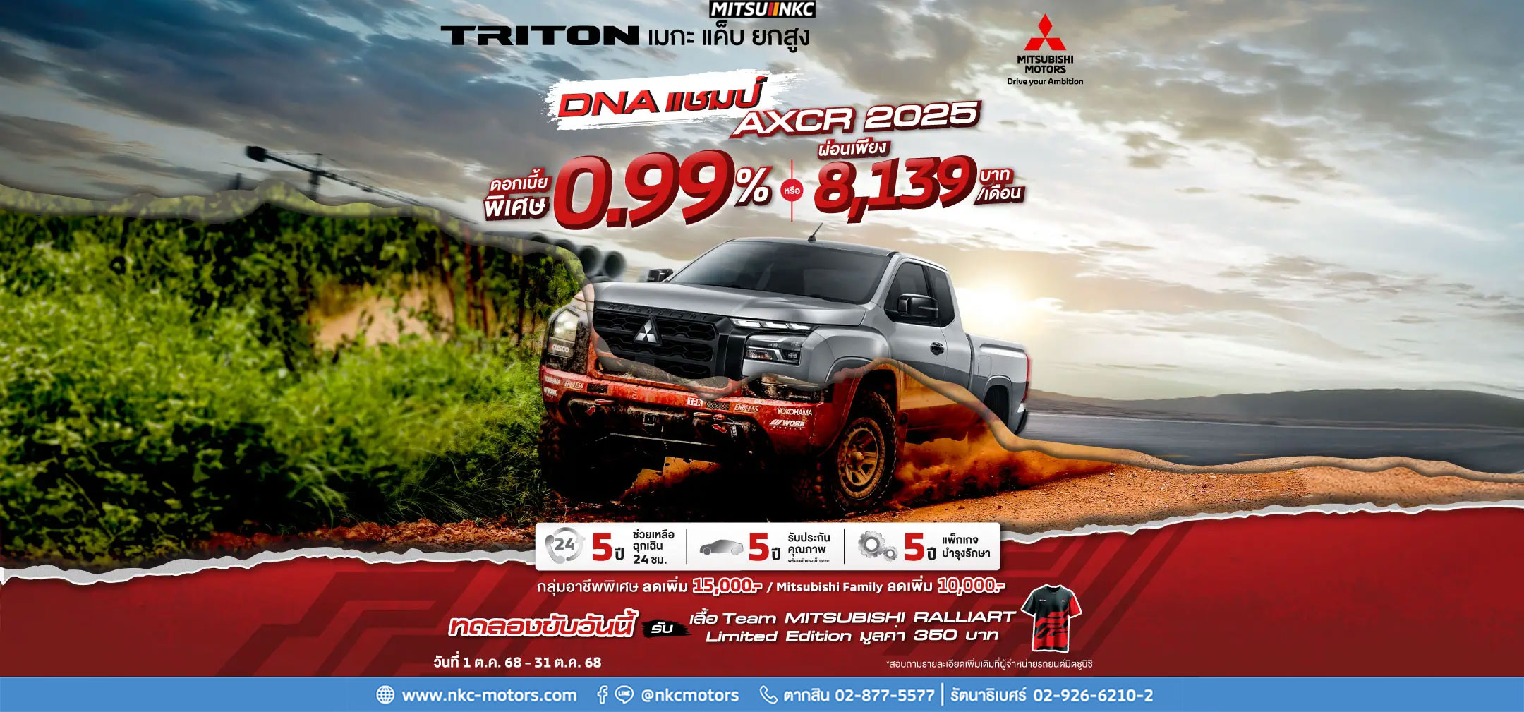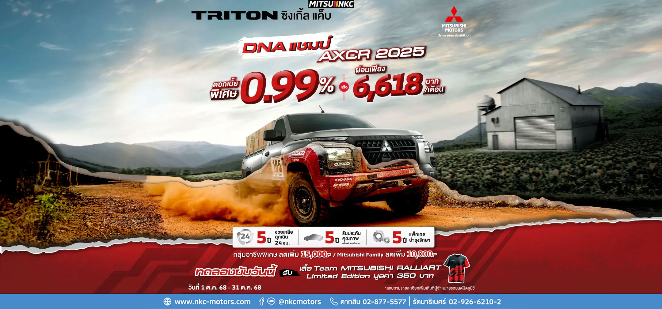 ไทรทัน สำหรับ รุ่น เมกะ แค็บ ยกสูง รับข้อเสนอพิเศษ เลือกรับดอกเบี้ยพิเศษ 0.99% นาน 48 เดือน หรือผ่อนเริ่มต้นเดือนละ 8,139 บาท